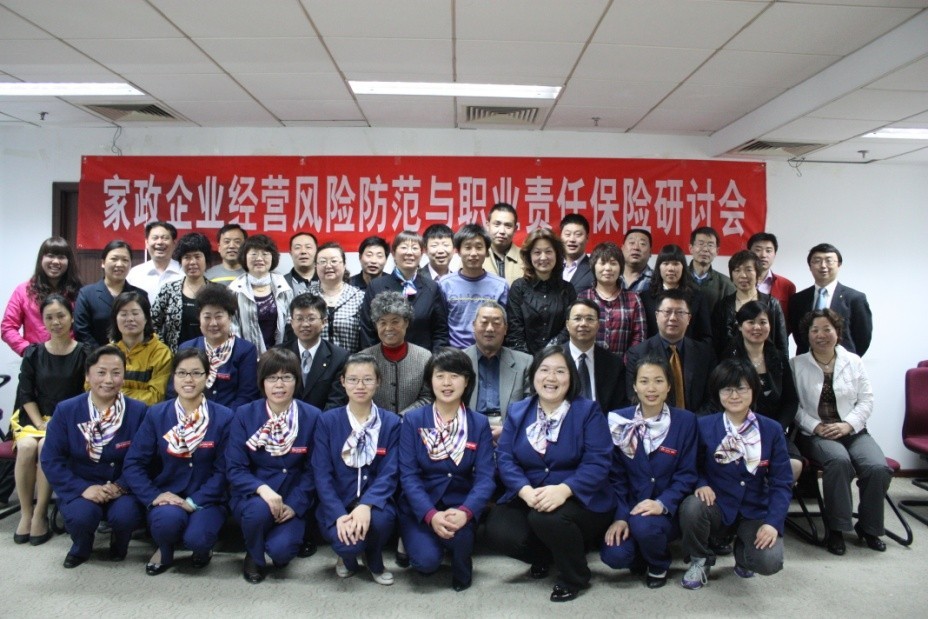 ◆2011年4月26日,由华夏中青家政连锁管理总部主办,太平洋保险公司北京分公司协办的“家政企业经营风险防范及职业责任保险研讨会”在北京华腾大厦顺利召开。在中国家庭服务业协会和北京家政服务协会主要领导的支持下,来自全国九个省市的家政企业负责人及风险控制业务部门的代表近50人欢聚一堂,共同交流家政风险防范的经验,探讨进一步防范的措施。