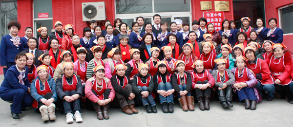 短暂的相处,领导和姐妹们无比融洽,家政员十分高兴的与两位领导及有关部门的负责人一起在店铺小院里留下了小年夜的全家福。