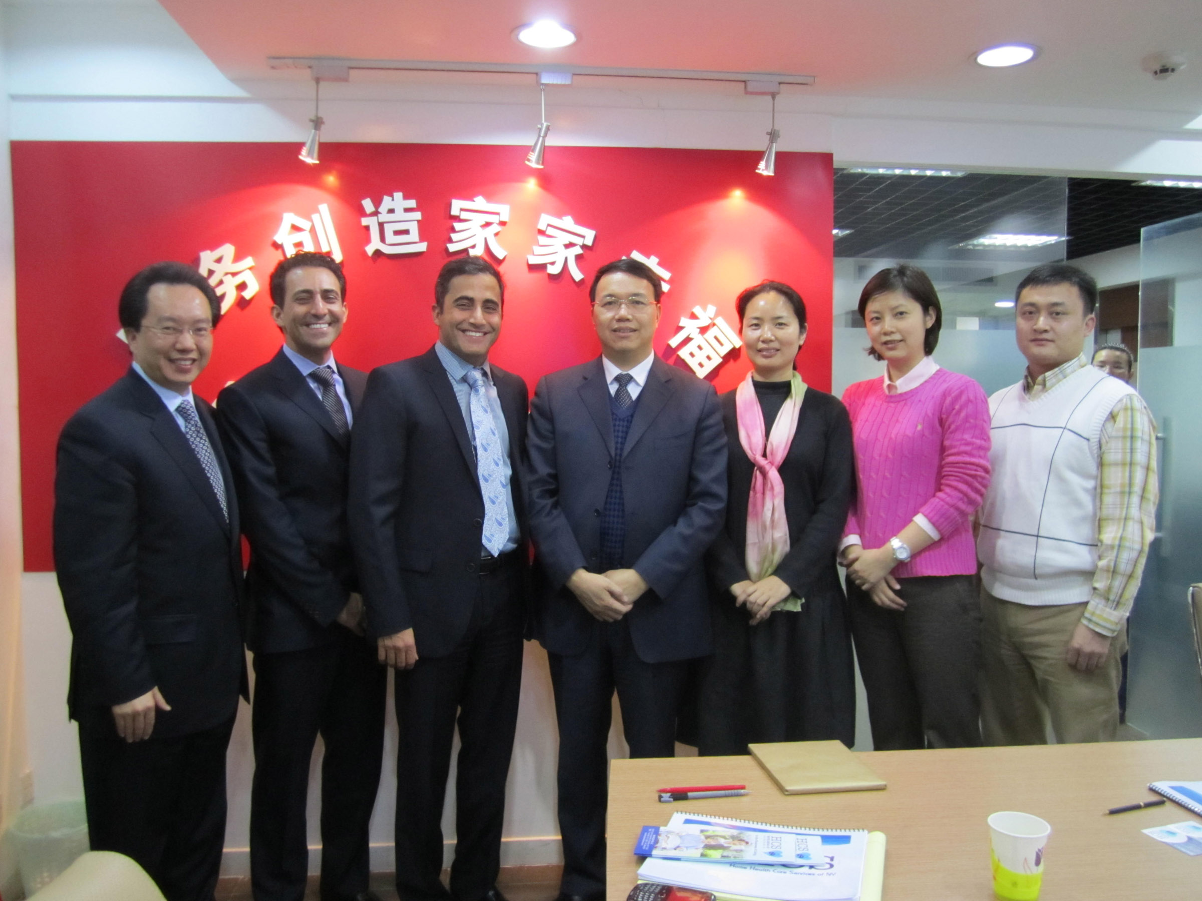 2012年3月22日,纽约健乐家庭护理公司(HCS)总裁杰夫·瑟米亚和高级副总裁西蒙·瑟米亚一行访问华夏中青家政总部,与公司总部部分高管进行业务交流。