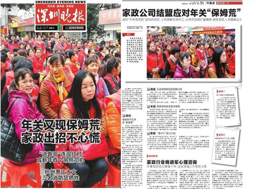 十年庆喜获《深圳晚报》头版头条报道、05版整版报道家政行业