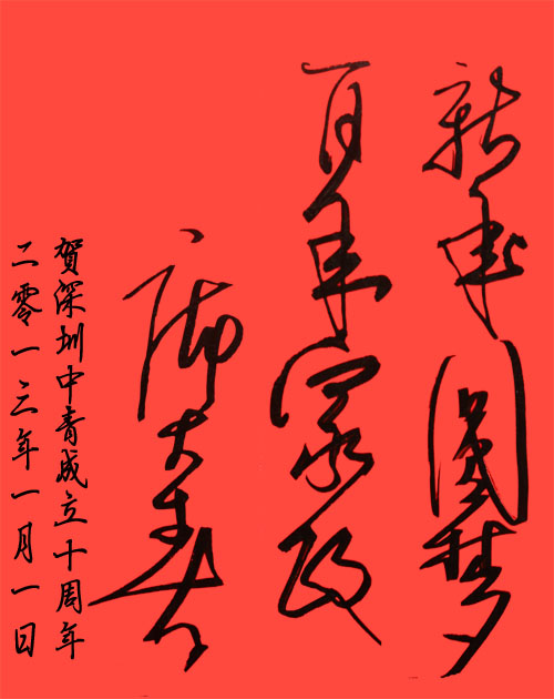 华夏中青家政连锁总部董事长庞大春在深圳华夏中青公司十周年庆上的题词