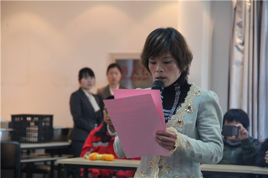 来自四川自贡旺万家公司的主管龚义霞代表全体学员宣读了感谢信,特别感谢了基地工作人员和同学在其发病的时候给予的关心和帮助。龚义霞的热泪和深深的鞠躬感染了在场每一个人。
