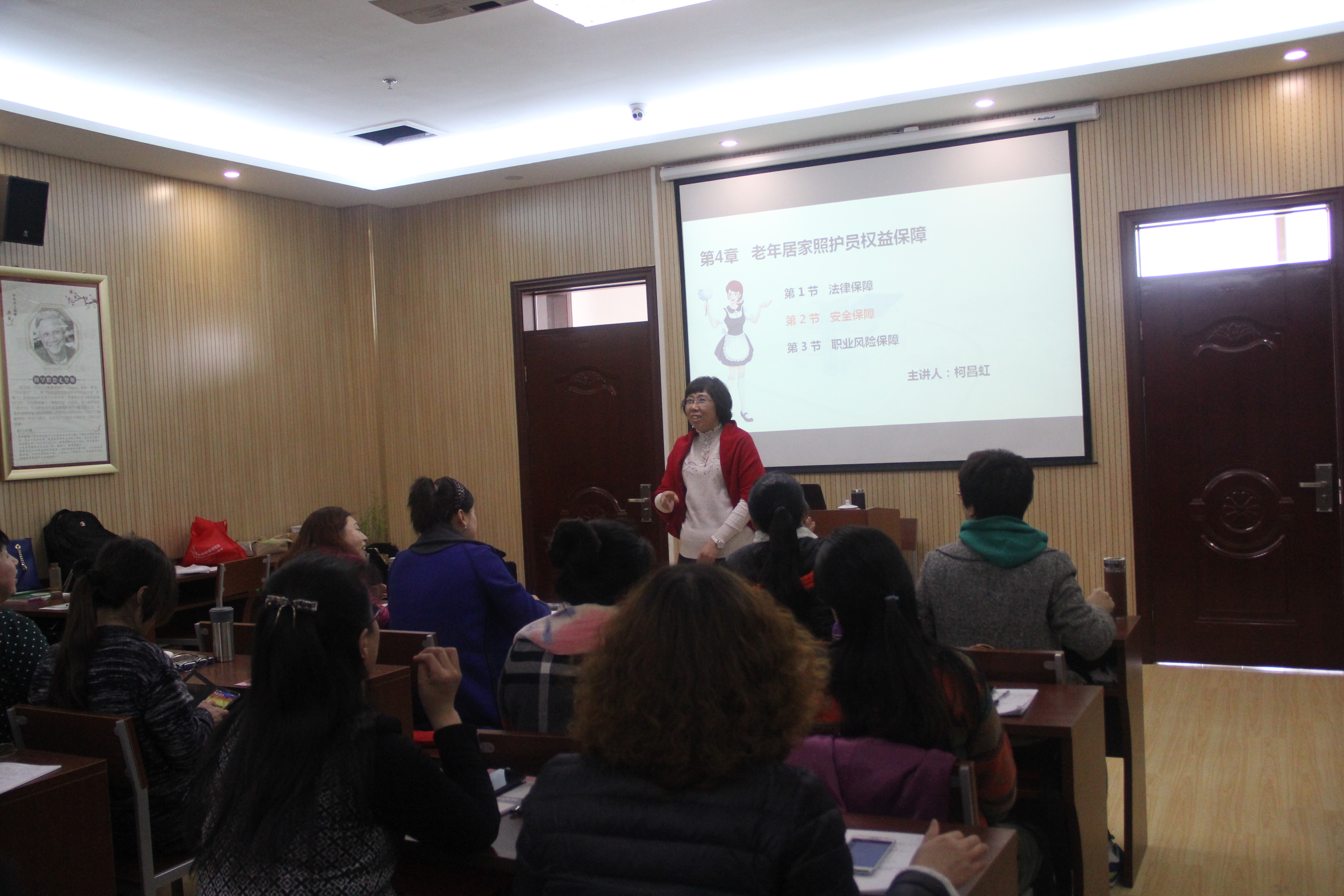3月12日,家政培训师培训班的课程依然精彩不断,安排了《培训师沟通技巧》和《居家养老日常照护》两堂重要课程,虽然课业压力很大,学员们却更加珍惜这宝贵的机会,如饥似渴、争分夺秒地学习。在“沟通技巧”课程中,大家聚精会神地听讲,积极地互动,掌声欢笑声在教室里此起彼伏。“照护老人”是家政服务公司的重要业务之一,在下午的“教学示范一居家养老照护安全”的课程中,柯昌虹老师用一个个鲜活的案例讲授了养老照护员“社交”、“入户”和“交通出行”三个方面的安全注意事项,系统全面地阐述了养老照护员安全培训的内容与技巧。