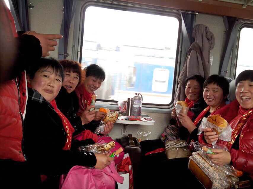 姐妹们在火车上开餐啦!