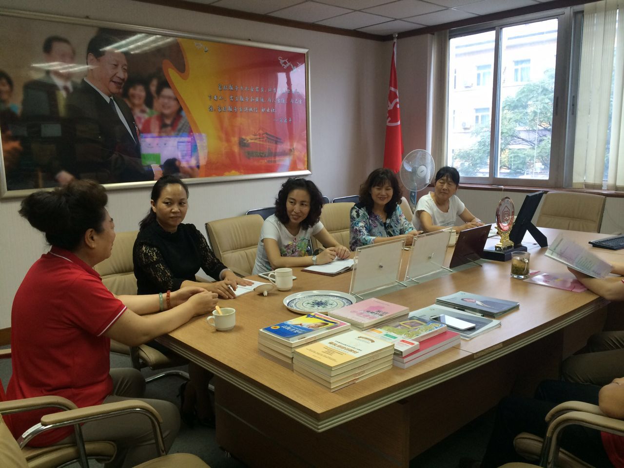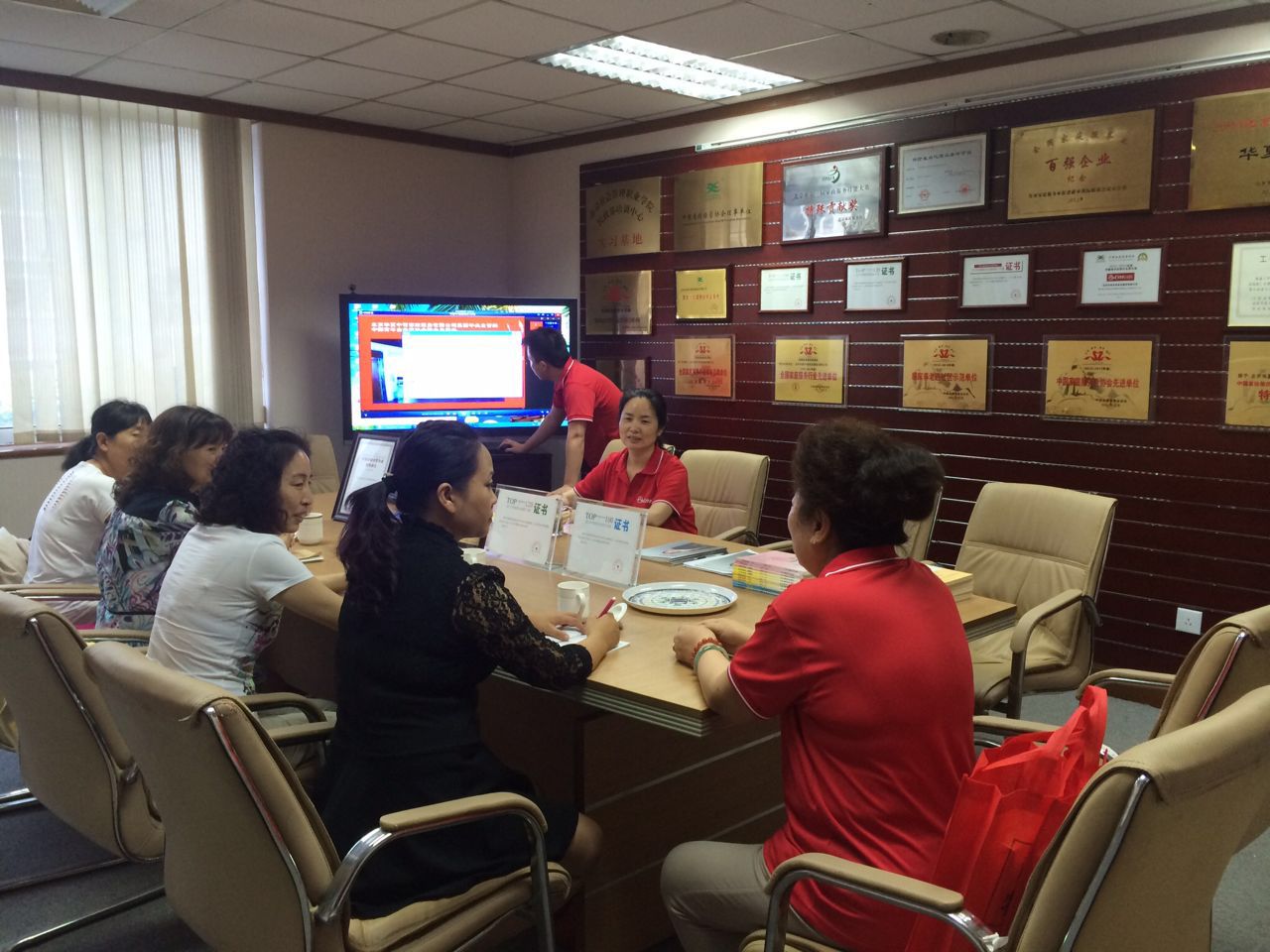 在参观了总部办公室与家政培训教室后,由蔡淑云总监主持,双方在华夏中青总部会议室举行座谈,运营总监杨琳、王锦绣等业务部门负责人参加。在听了华夏中青负责人对于华夏中青加盟与家政培训业务的相关介绍后,刘爱荣总经理仔细询问了华夏中青加盟机构分布情况与总部支持方案、家政培训考核与取证条件等事宜。双方负责人都对于今后的深入合作都充满了信心与期待。