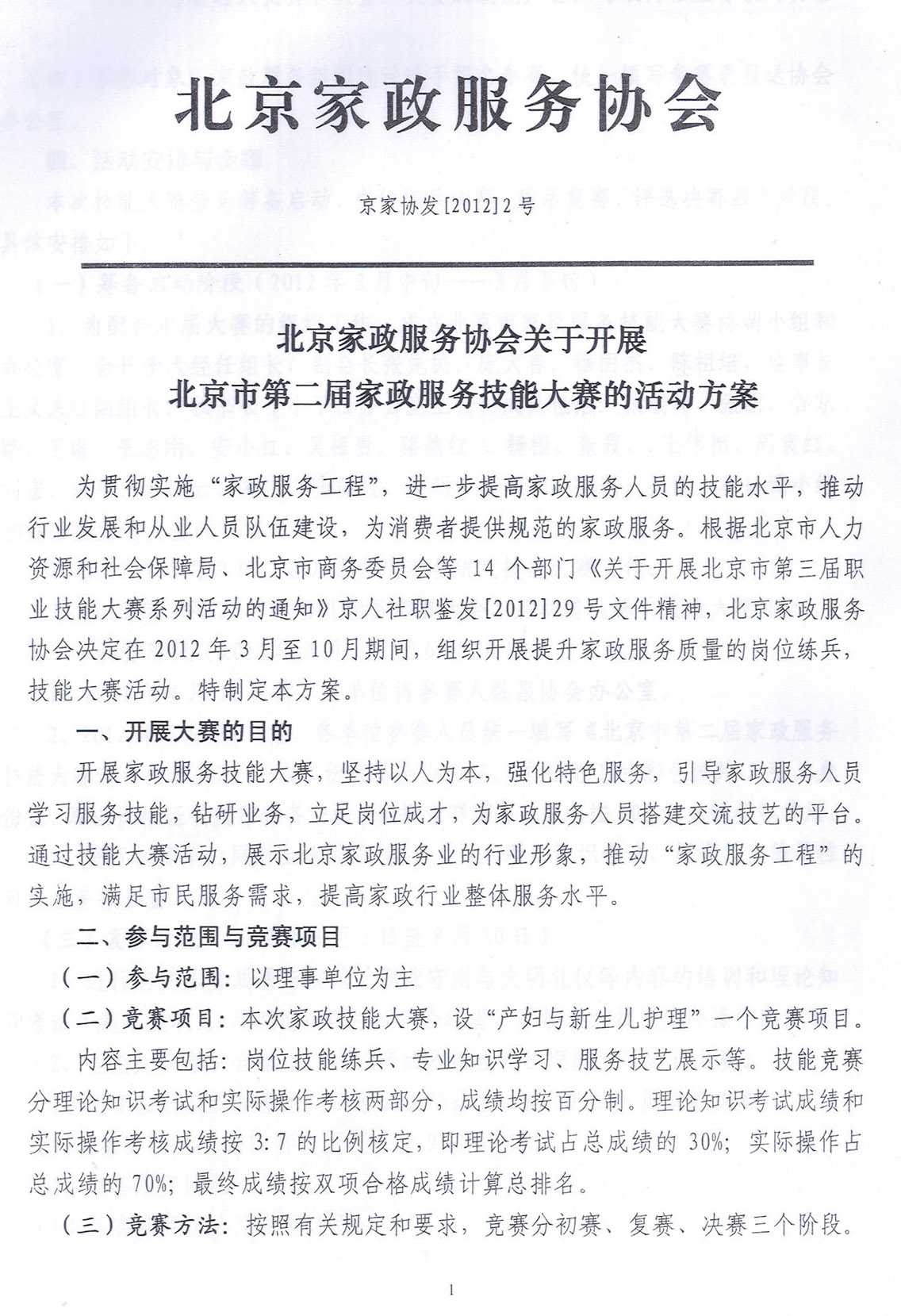 北京家政服务协会关于开展北京市第二届家政服务技能大赛的活动方案