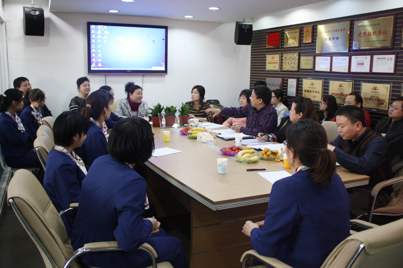 2012年3月30日,全国总工会国际联络部副部长彭勇及北京市总工会国际部秘书长于海华等一行14人到华夏中青总部进行调研和慰问。