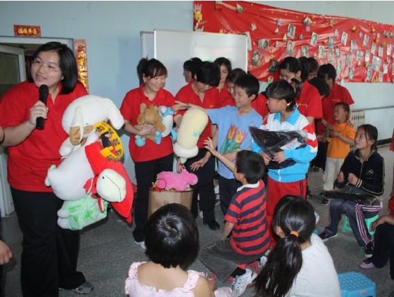 “六一”国际儿童节将至,华夏中青党支部、团支部积极响应方庄地区紫芳园社区党委的号召,于5月22日(周六)组织公司总部、直属公司和西部学院的党、团员和入党积极分子二十余人随社区党委远赴位于北京顺义区的太阳村。为了这次探访,党、团支部提前一周开始组织募捐物资,百余件衣服、不计其数的玩具、文具,还有面粉、卷筒纸等太阳村急需的生活物资,是大家对太阳村的关注和问候的凝结。早教老师们还专门为这次活动准备了互动韵律操和小游戏,太阳村的小朋友们唱唱跳跳,眼中闪烁着幸福的光芒,所以人都感觉到那无限的快乐和温暖。