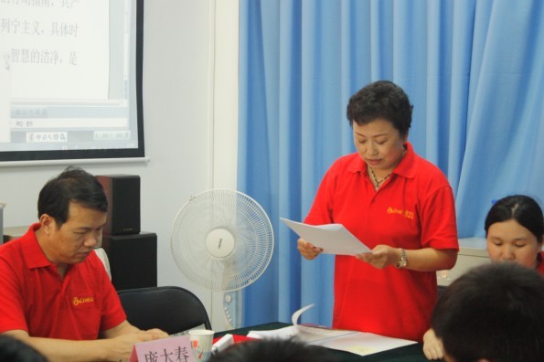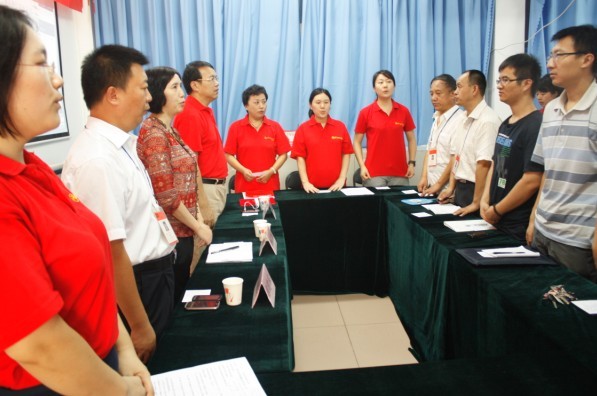 教师节前夕,在北京分钟寺店的教室里召开了党员发展大会,讨论家政培训师吕玉环同志的入党问题。大会在庄严的国歌中开始。同志们讨论认为,吕玉环同志在培训工作中表现突出,在汶川地震后对灾民的培训工作中发挥了积极作用,在日常工作中关心学员,体恤同事,钻研业务知识;学习党的知识,拥护党的方针政策,符合党员条件。应邀出席会议的公司领导发表了对发展新党员的意见和对企业党建工作的愿望。华夏中青连锁总部董事长庞大春同志回顾了吕玉环同志十余年在家政行业的经历,肯定了她的工作。并且向华夏中青的全体党员提出了"要做战斗堡垒,不要在保垒中战斗"的要求,发挥先锋模范作用,勇于探索、敢于发现,积极承担企业发展中的研发和试验工作。紫芳园社区党委郭建东书记对吕玉环同志多年来坚定的入党信念给与了赞扬,并且对公司为社区居民提供的优质服务给与了高度评价。党员们全票通过吕玉环加入中国共产党。方庄地区工委组织部部长杨翃对新党员表达了祝贺,对支部今后的工作提出了要求。
