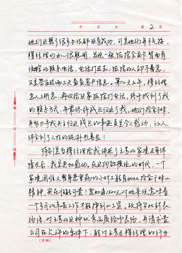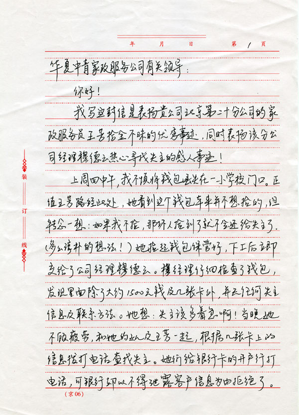 客户卞力致家政员王芳、第二十分公司经理穆德云的感谢信