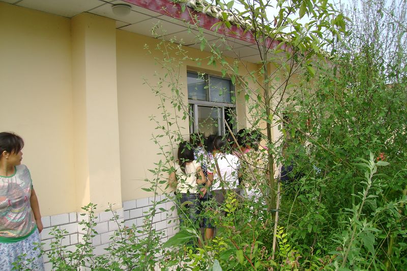 图片5:培训班内挤满了人,很多女性朋友只好在窗户外往内观看课堂情况