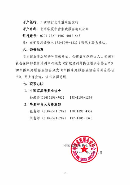 中国家庭服务业协会关于举办2012第三期“家政培训师”培训班通知