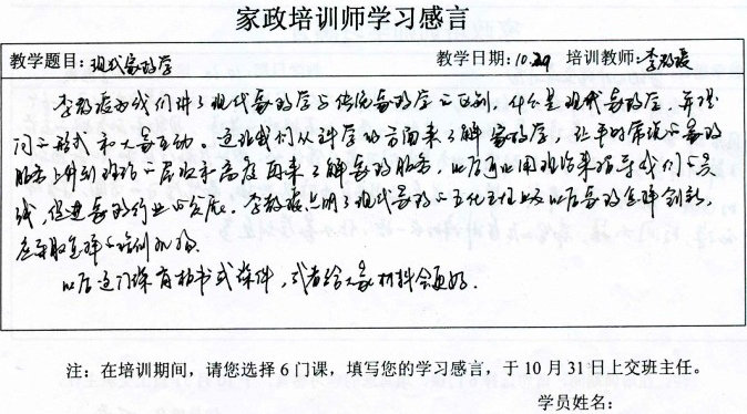 北京市首期“家政培训师”培训班家政师培训感言(一)