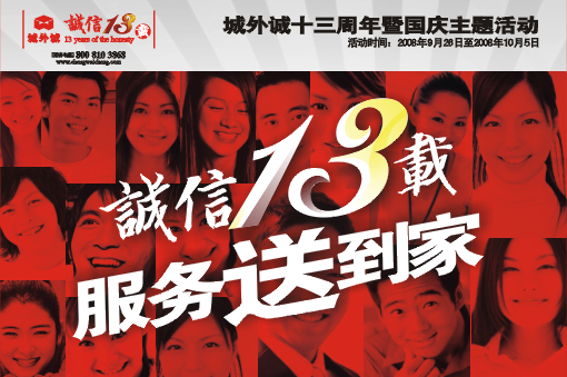 今秋九月,城外诚家居广场迎来十三周年店庆。为表达诚信回报社会、服务体现真情的经营理念,坚持踏实做事、诚信服务的朴素风格,城外诚家居广场特推出以“诚信十三载,服务送到家”为主题的免费家政小时工活动。