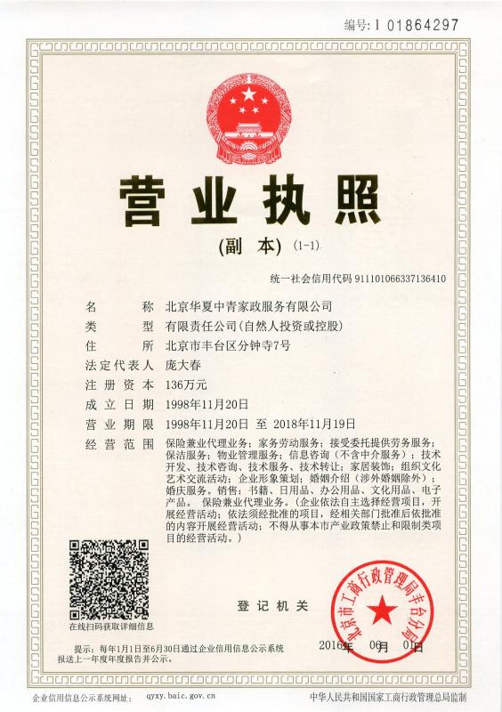 北京华夏中青家政服务有限公司