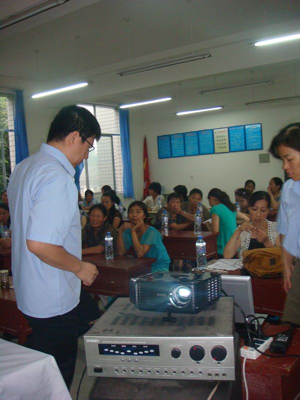 图片3:背对着镜头,调投影仪的男人叫朱雷,华夏中青CEO。从四川地震的第一天起,他和几个老总,都在用自己的实际行动,证明着中国之所以不垮的信条——“国家兴亡,匹夫有责”。