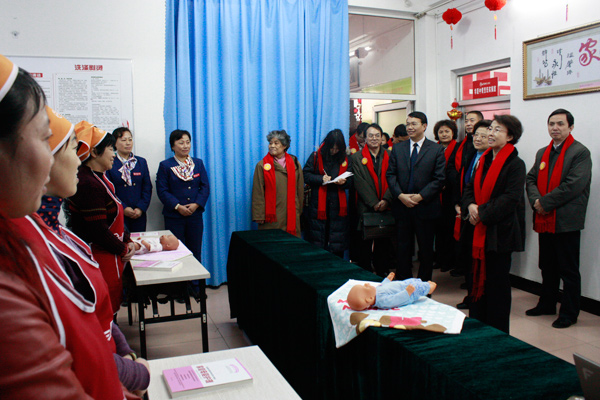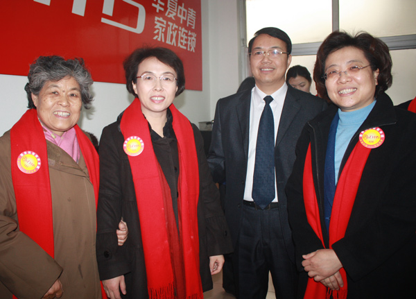 2012年1月16日下午,国家商务部部长助理仇鸿,北京市副市长程红在商务部服贸司和北京市商务委及北京家协等有关负责同志的陪同下,来到了北京华夏中青家政服务有限公司分钟寺直营店慰问一线的家政服务员和管理人员。领导们兴致勃勃的视察了店面的办公环境,观看了OA自动化办公系统和家政职业责任保险在线运行系统。然后到母婴护理提高班教室与30多位家政员亲切交谈,部长助理仇鸿赞赏提高班的家政员春节期间仍坚守岗位为首都市民提供服务,并亲切地询问大家有何要求。家政员成宝梅道出了大家共同的心声:“真想回家过年,但客户家离不开,我们就得留下来,我们也是拿了工资的,留下来给客户服务也是应该的”,领导们对此表示赞赏。家政员朱小琴、杨贵生也表达了一个心愿:“我们最大的希望就是客户能平等的对待我们,让我们更有尊严”。两位领导分别对家政员发表了热情洋溢的讲话,使在场的姐妹们无比激动,倍受鼓舞,教室里不时发出阵阵热烈的掌声。
