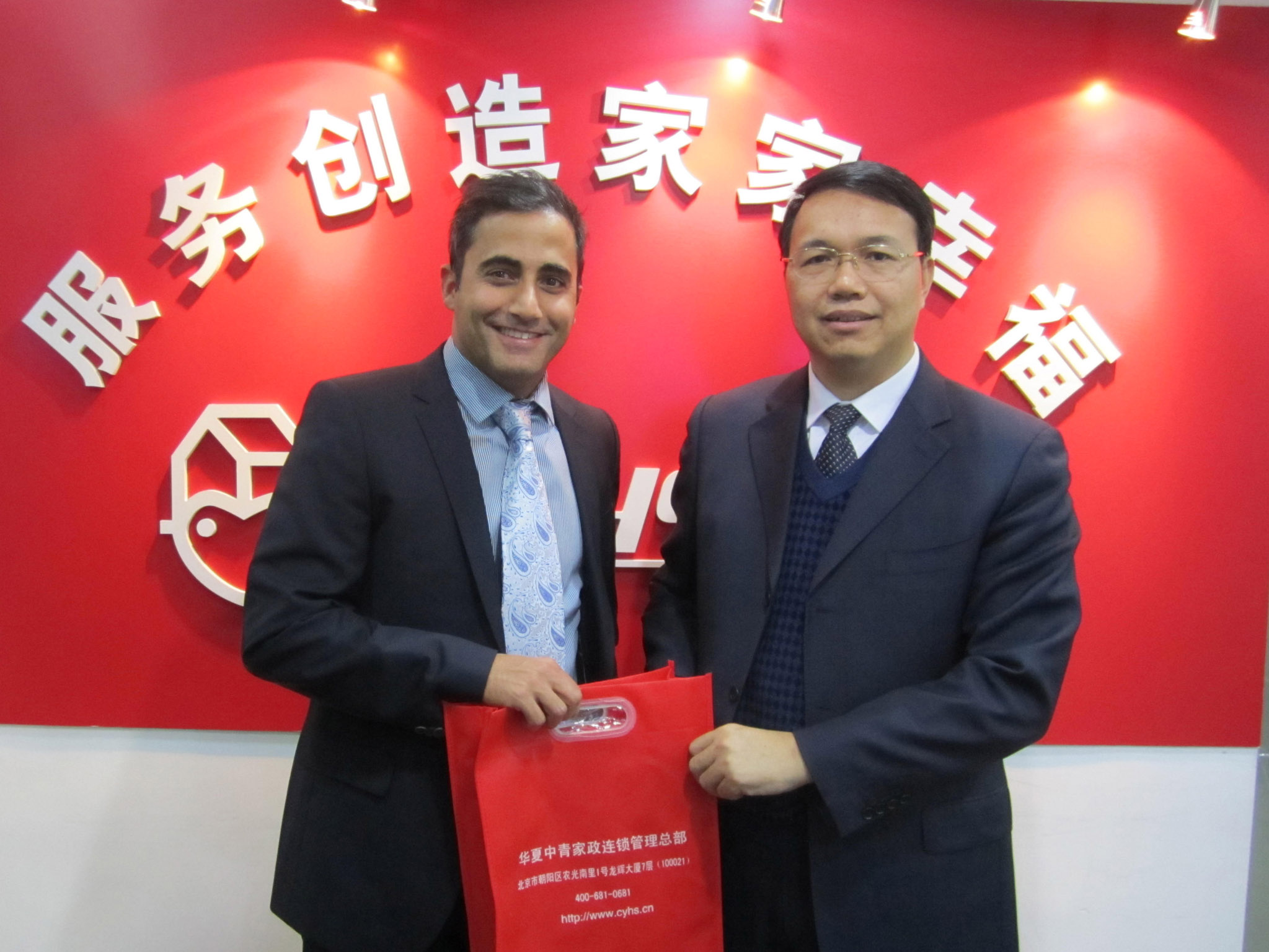 2012年3月22日,纽约健乐家庭护理公司(HCS)总裁杰夫·瑟米亚和高级副总裁西蒙·瑟米亚一行访问华夏中青家政总部,与公司总部部分高管进行业务交流。