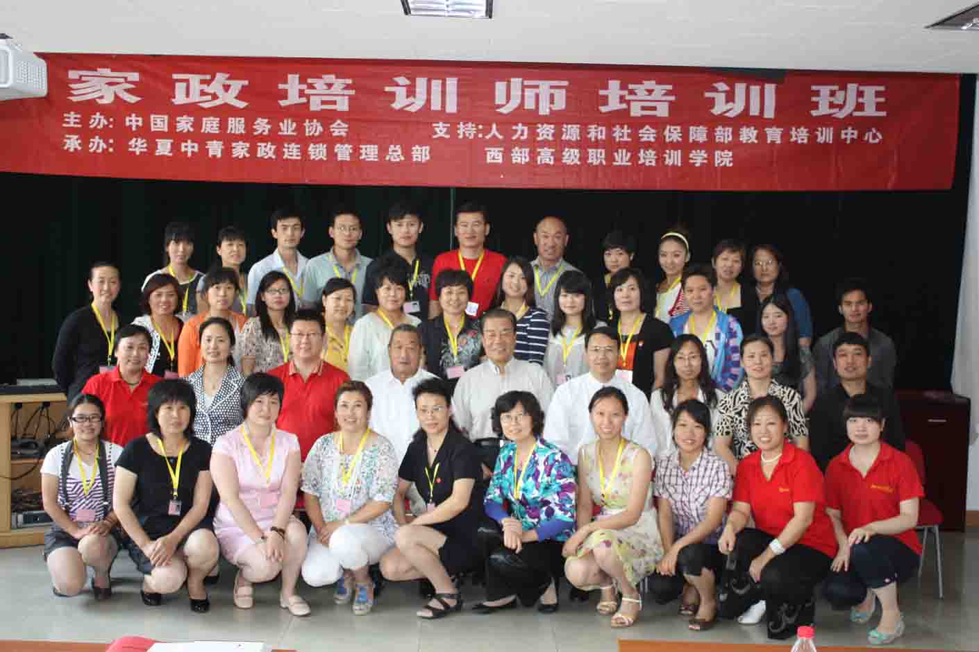 2012年6月10日上午9点,由中国家庭服务业协会主办、人力资源和社会保障部教育培训中心与西部高级职业培训学院支持、华夏中青连锁管理总部承办的第三期“家政培训师培训班”开班典礼在北京朝阳区委党校静源培训中心隆重举行。