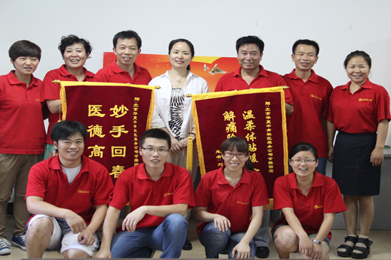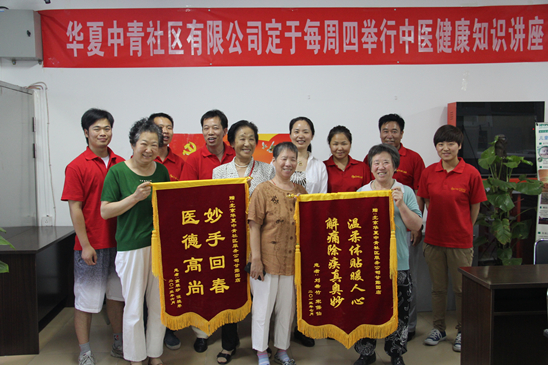 7月5号下午,甘露园小区的4位居民给华夏中青社区公司社区服务站送来两面锦旗,分别绣着“医德高尚 妙手回春”、 “温柔体贴暖人心 解痛除疾真奥妙”,感谢中医调理部全体员工的辛勤付出。60多岁的催女士,住甘露园南里二社区,有着多年的糖尿病史,调理部成员在为其进行中医调理过程中,制定了一套相适应的理疗方案,并选择质优价廉的药物和食疗方法解决。每一次见面,中医调理部的周庚老师都会询问催女士的感受,并根据患者的恢复状况及时调整方案。催女士说:“我去过好多家医院,就没见过哪儿像咱们这儿一样暖心的!他们就像我们的亲人,到这儿就像回家一样。除了送面锦旗,我实在不知道该怎么感谢他们”。76岁高龄的高女士患哮喘多年,因收效甚微,一度对治疗失去了信心, 经过中医调理部近一个半月的调理,其咳喘、干渴症状大为缓解,她说是社区服务站的中医调理老师给了她生活的希望。