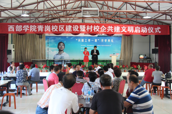 2013年8月18日上午,西部学院青岗校区建设暨村校共建文明活动启动仪式顺利举行。出席启动仪式的有西部学院师生代表,青岗村两委成员和村民代表,施工单位的领导和员工代表,东仙坡镇有关党政领导,学院合作企业有关负责人。