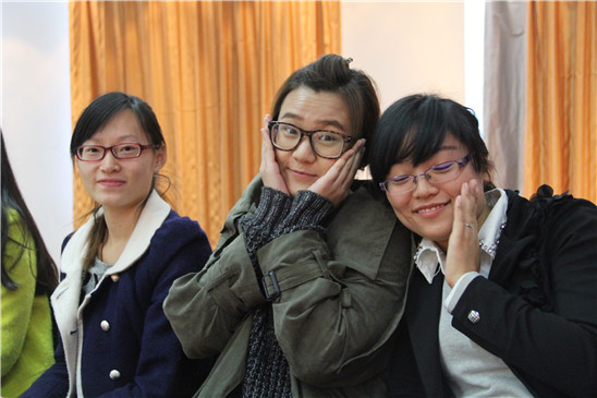在实操示范课中自编自导情景剧的“大毛”、“二毛”的赵圆、黄娟,两个年轻的女孩鄂陕长江相隔,是本次培训让她们相聚在北京,成为姐妹,希望以后继续与大家沟通交流养老护理知识……
