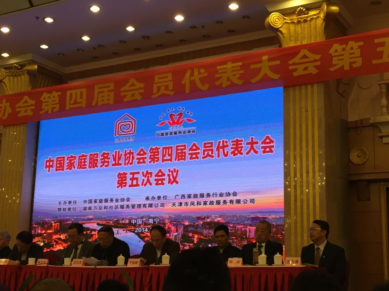 2014年12月16 日,中国家庭服务业协会第四届会员代表大会第五次会议在广西南宁市召开。华夏中青董事长庞大春、研发培训总监杨琳代表公司参加了会议。