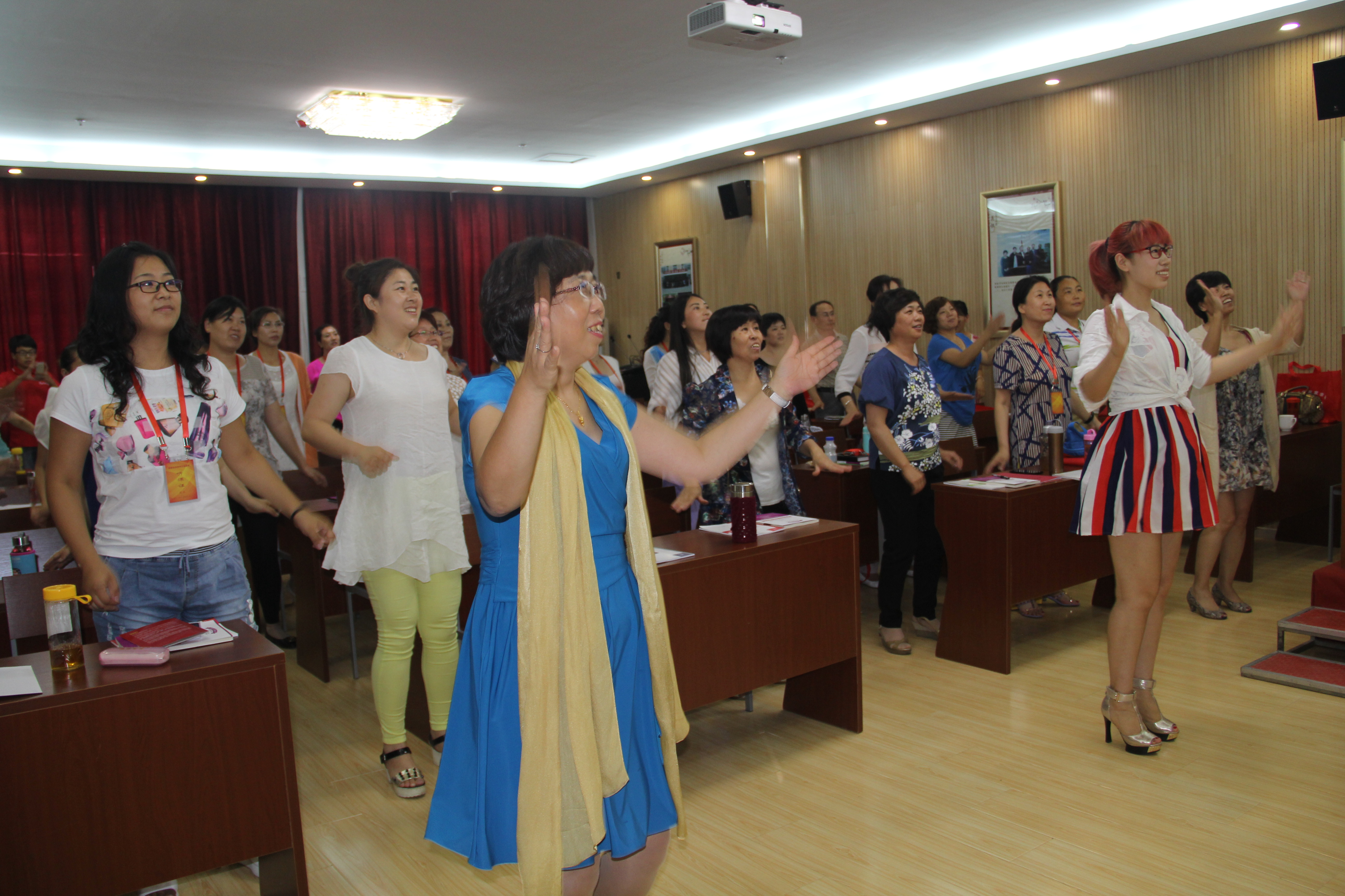 家政经理人培训课程还在如火如荼的进行中,课前和课后的娱乐活动也是不可缺少。华夏中青培训部柯昌虹老师作为本期培训班的班主任,尽职尽责。不但课堂上妙语连珠,讲课演示行云流水,而且课前、课下也是积极活跃气氛:网络神曲《小水果》激情演唱,学员舞步跳动;办公室健身舞步《鸭子舞》把气氛引到高潮。
