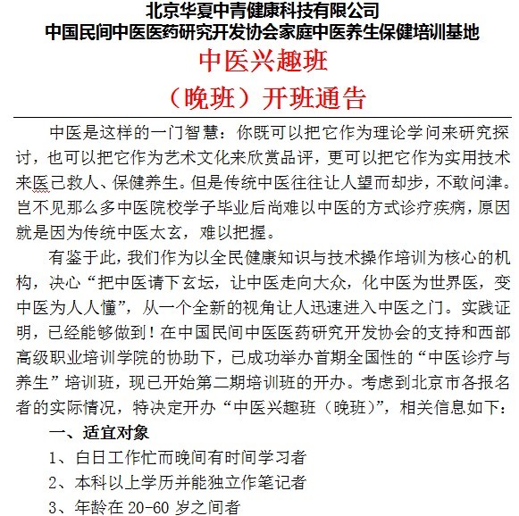 总部健康科技公司“中医兴趣班”晚班预开班