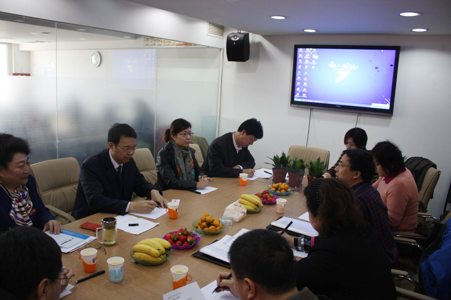 2012年3月30日,全国总工会国际联络部副部长彭勇及北京市总工会国际部秘书长于海华等一行14人到华夏中青总部进行调研和慰问。