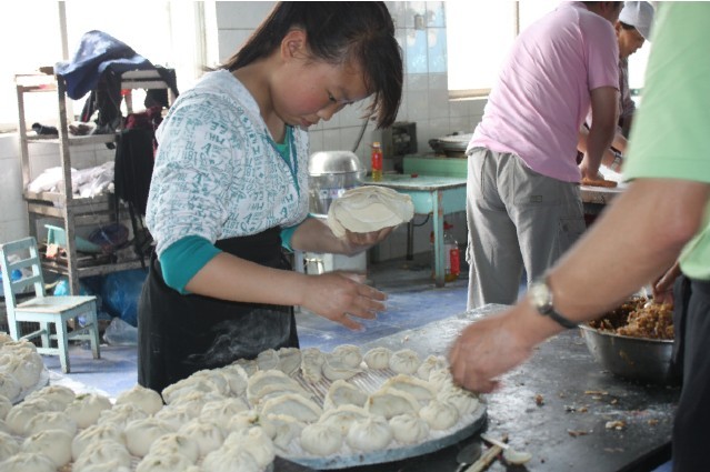 太阳村年龄稍大的孩子在餐厅包包子