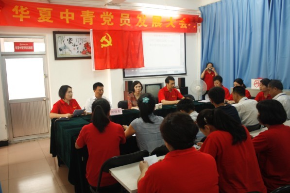 教师节前夕,在北京分钟寺店的教室里召开了党员发展大会,讨论家政培训师吕玉环同志的入党问题。大会在庄严的国歌中开始。同志们讨论认为,吕玉环同志在培训工作中表现突出,在汶川地震后对灾民的培训工作中发挥了积极作用,在日常工作中关心学员,体恤同事,钻研业务知识;学习党的知识,拥护党的方针政策,符合党员条件。应邀出席会议的公司领导发表了对发展新党员的意见和对企业党建工作的愿望。华夏中青连锁总部董事长庞大春同志回顾了吕玉环同志十余年在家政行业的经历,肯定了她的工作。并且向华夏中青的全体党员提出了"要做战斗堡垒,不要在保垒中战斗"的要求,发挥先锋模范作用,勇于探索、敢于发现,积极承担企业发展中的研发和试验工作。紫芳园社区党委郭建东书记对吕玉环同志多年来坚定的入党信念给与了赞扬,并且对公司为社区居民提供的优质服务给与了高度评价。党员们全票通过吕玉环加入中国共产党。方庄地区工委组织部部长杨翃对新党员表达了祝贺,对支部今后的工作提出了要求。