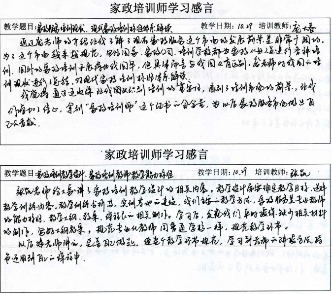 北京市首期“家政培训师”培训班家政师培训感言(二)