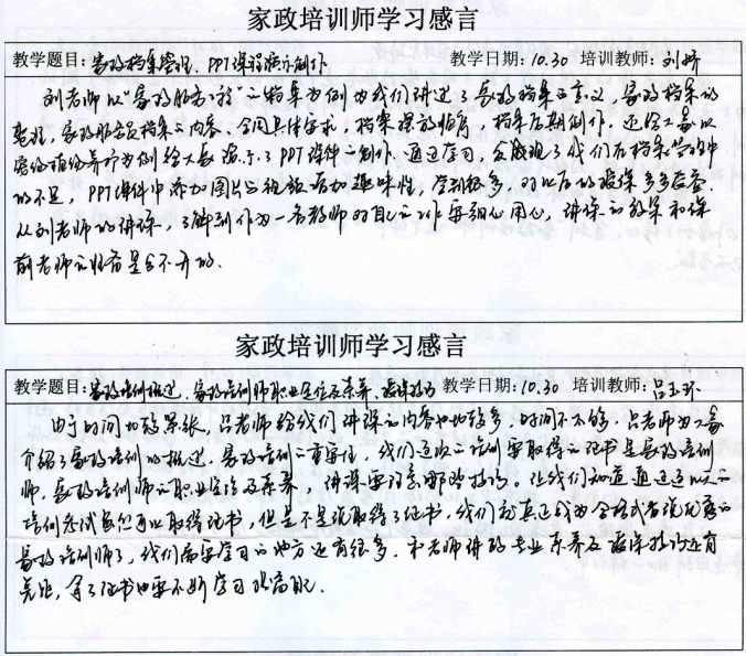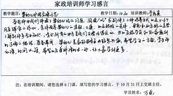 2013年第二期“家政培训师”培训班培训感言(二)